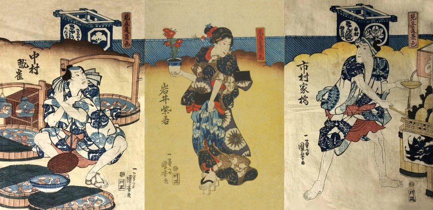 Selection of Summer Scenes (Mitate natsu keshiki, 見立夏景色) Actors: Left sheet: