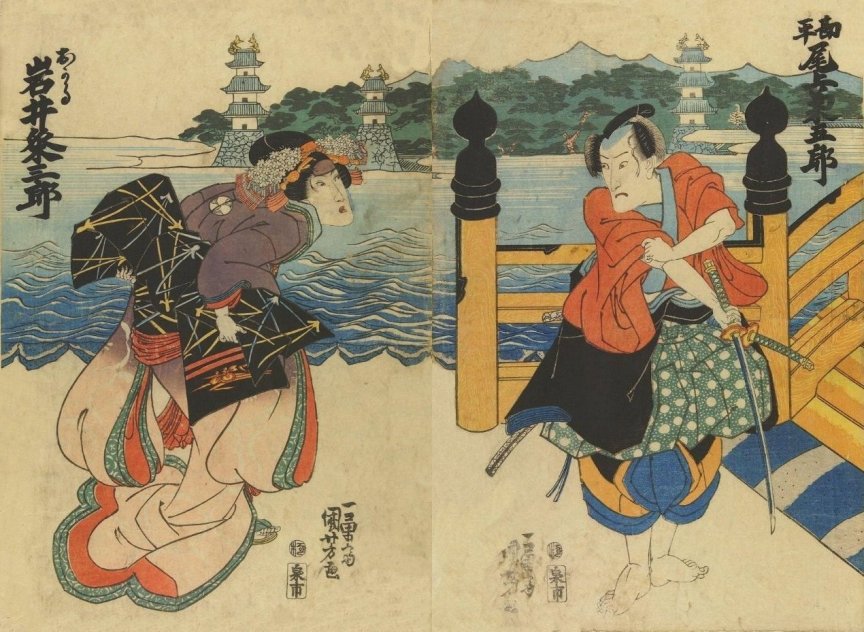 Actors: Bandô Mitsugorô IV as Ukiyo Matabei (浮世又平, left) and