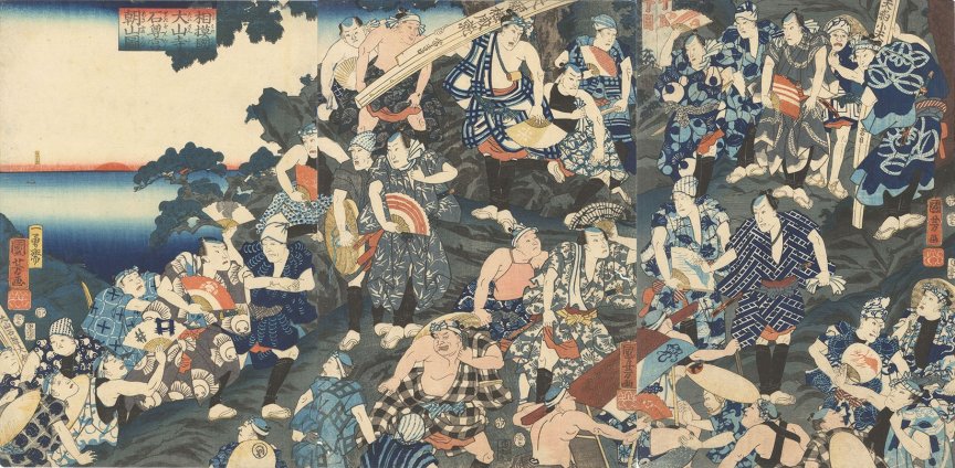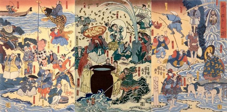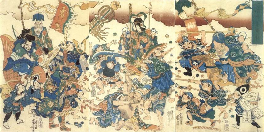 figures engaged in various activities portraying legends, heroes, and stories Date: 1847-1852 Publisher: Wakasa-ya Yoichi |