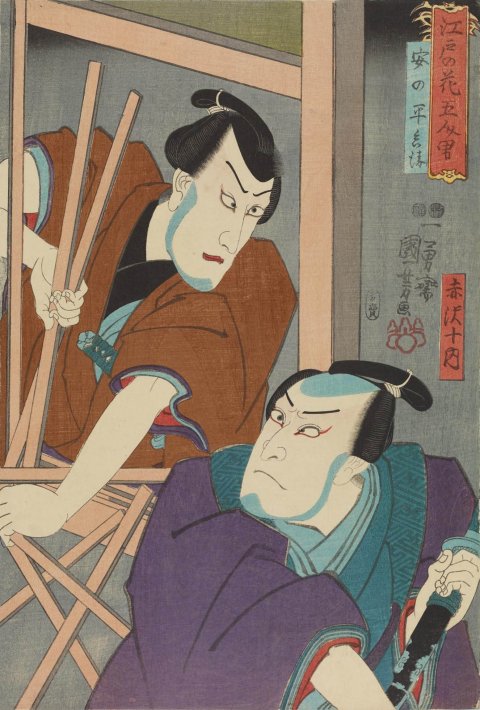 Actors: Ichikawa Danjûrô VIII as An no Heibei (安の平兵衛, top) and