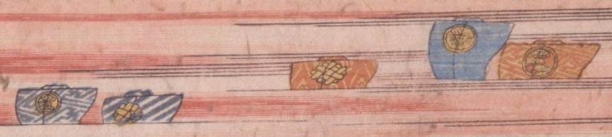 sails (Kihan, 帰帆) Actors’ guild: Owariya (尾張屋) NOTE: The sails in the background bear three different mon of the Owariya