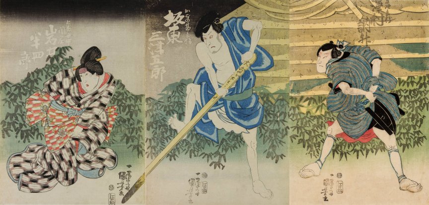 Actors: Ichimura Uzaemon XII as Kyo no Jirô (京のじろう, left), Onoe Eizaburô