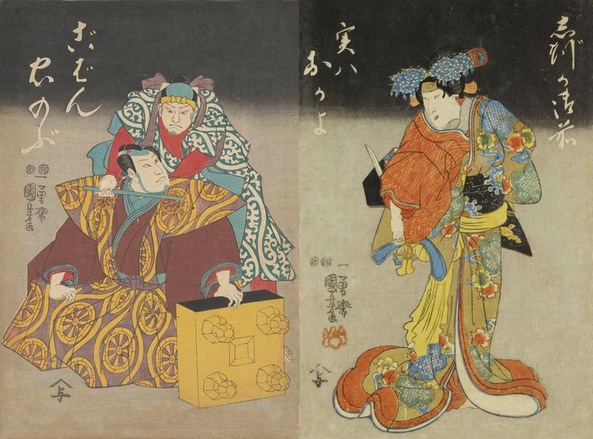 month of 1847 Theater: Kawarasaki Publisher: Iba-ya Sensaburô NOTE: This diptych