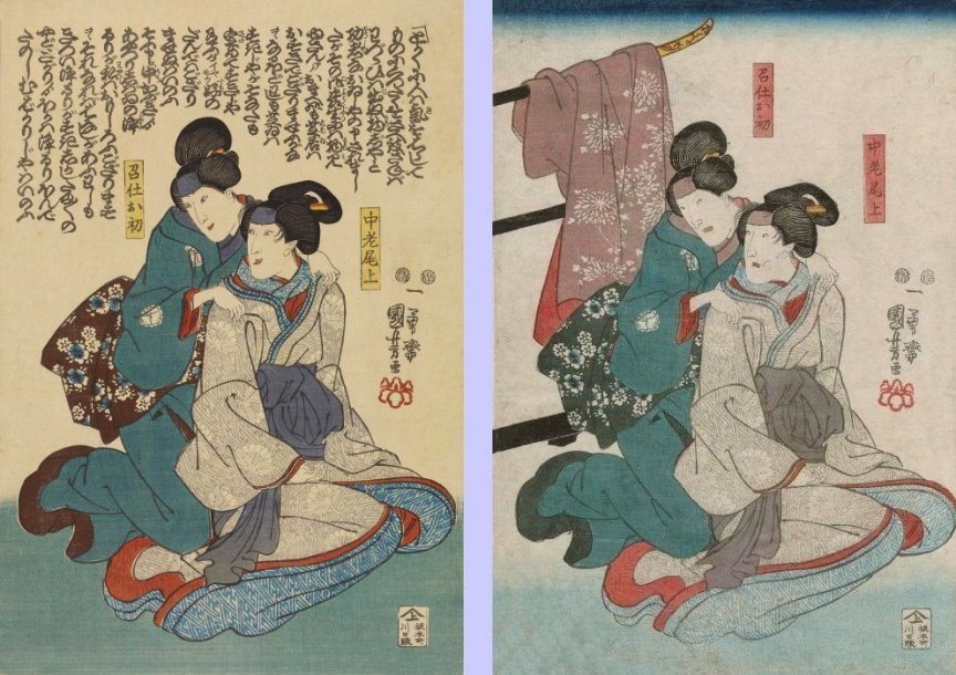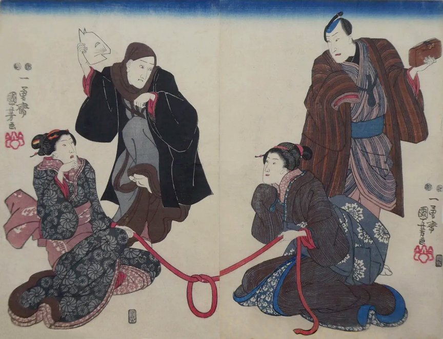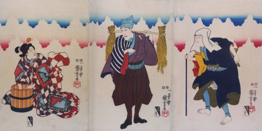The triptych was reissued with Kuniyoshi’s signature and numerous