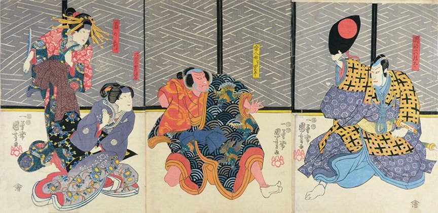 center), and Onoe Baikô IV as Okaru (おかる, right), Play: