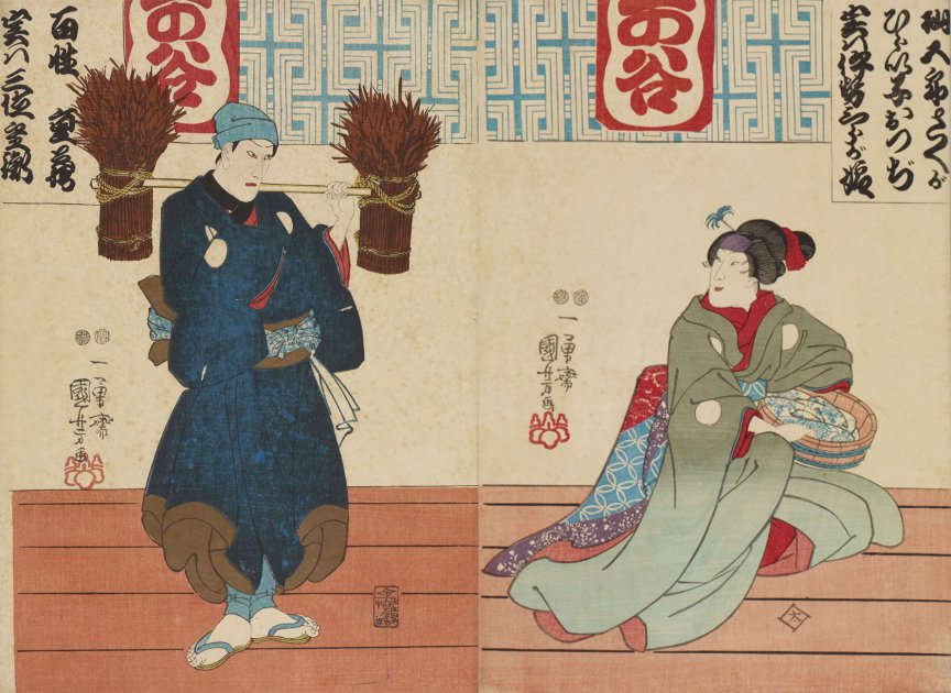 I as Osano (於さの, left), Nakamura Utaemon