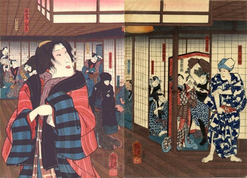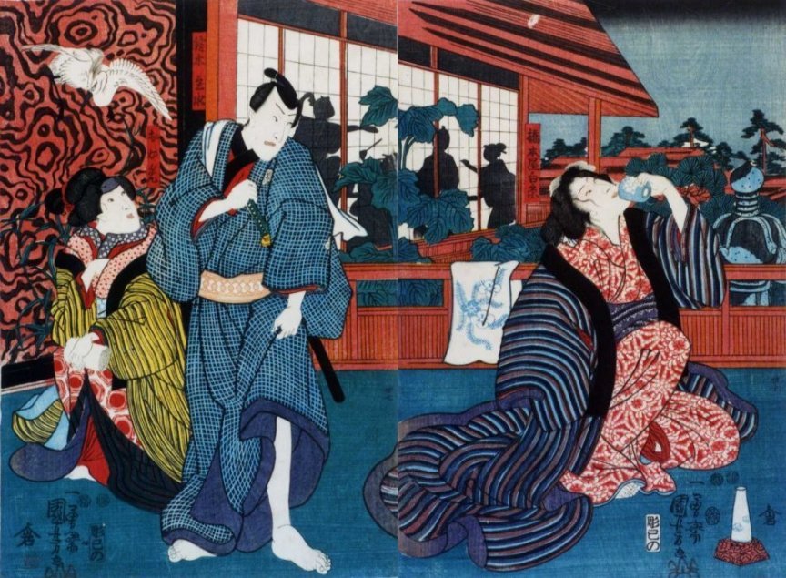 (ぬれ髪長五郎, right) Play: Futatsu chôchô kuruwa nikki (双蝶仝曲輪日記, Diary of Two Butterflies