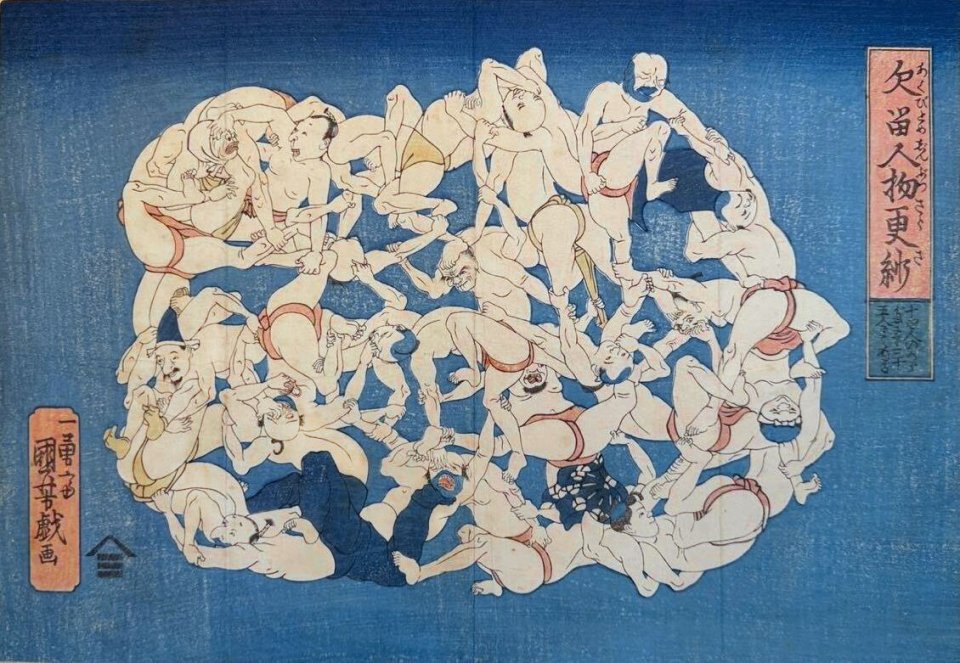 Asahina Saburô Yoshihide in a Wrestling Match with