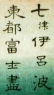 as Chidori holding cloth around her shoulders View of Mt. Fuji: Mt. Fuji from Susaki (海士千鳥 すさきのふし) Iroha order: No. 6 (へ, he) |