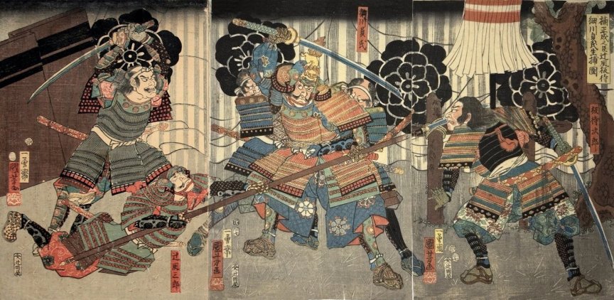 triptych, it actually represents Nakagawa Kiyohide and Sakuma Gemba Morimasa